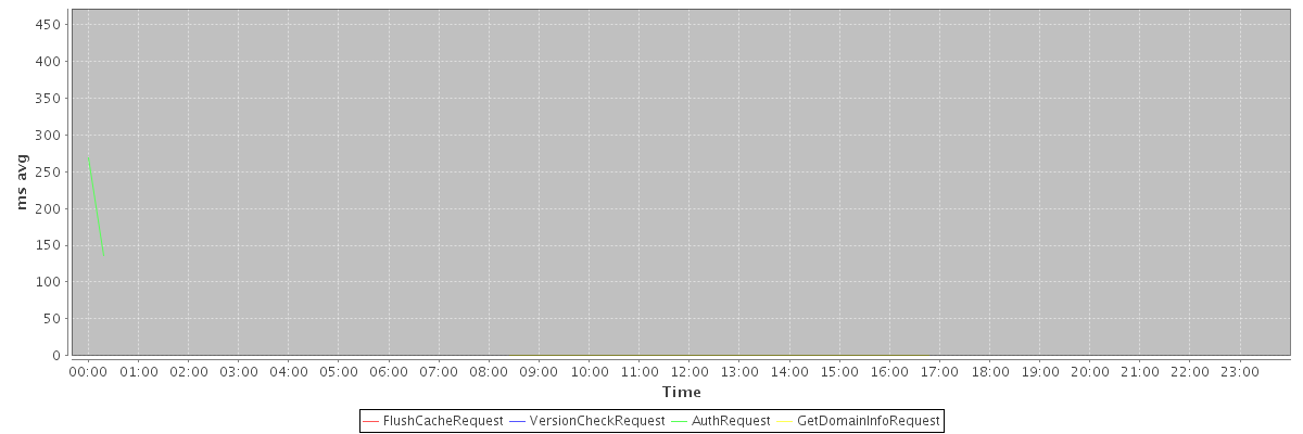 avg(FlushCacheRequest) = 64.00 avg(VersionCheckRequest) = 449.00 avg(AuthRequest) = 202.50 avg(GetDomainInfoRequest) = 0.08