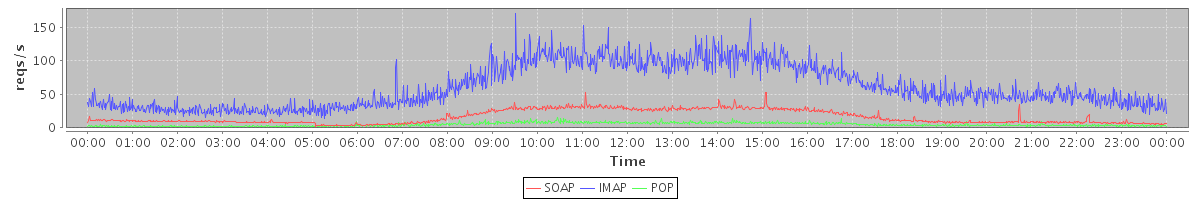 Host zm09.stanford.edu: Mailboxd: Request Rate by Client Protocol