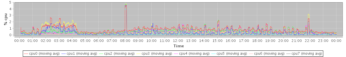 avg(cpu0) = 0.08 avg(cpu1) = 0.17 avg(cpu2) = 0.02 avg(cpu3) = 0.06 avg(cpu4) = 0.03 avg(cpu5) = 0.02 avg(cpu6) = 0.03 avg(cpu7) = 0.02
