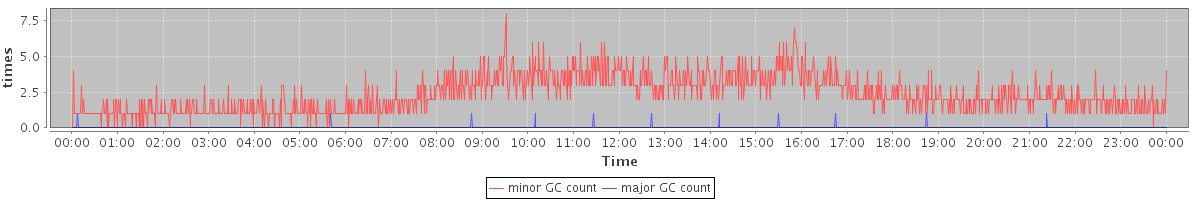 avg(minor GC count) = 2.34 avg(major GC count) = 0.01