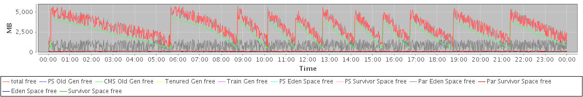 avg(total free) = 3221.53 avg(PS Old Gen free) = 0.00 avg(CMS Old Gen free) = 2298.03 avg(Tenured Gen free) = 0.00 avg(Train Gen free) = 0.00 avg(PS Eden Space free) = 0.00 avg(PS Survivor Space free) = 0.00 avg(Par Eden Space free) = 816.34 avg(Par Survivor Space free) = 107.16 avg(Eden Space free) = 0.00 avg(Survivor Space free) = 0.00