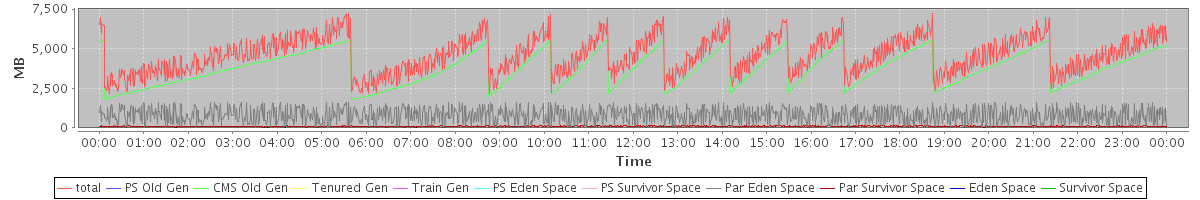 avg(total) = 4605.78 avg(PS Old Gen) = 0.00 avg(CMS Old Gen) = 3722.97 avg(Tenured Gen) = 0.00 avg(Train Gen) = 0.00 avg(PS Eden Space) = 0.00 avg(PS Survivor Space) = 0.00 avg(Par Eden Space) = 789.28 avg(Par Survivor Space) = 93.52 avg(Eden Space) = 0.00 avg(Survivor Space) = 0.00