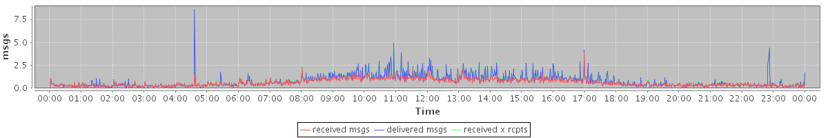 avg(received msgs) = 0.61 avg(delivered msgs) = 0.75 avg(received x rcpts) = 0.79