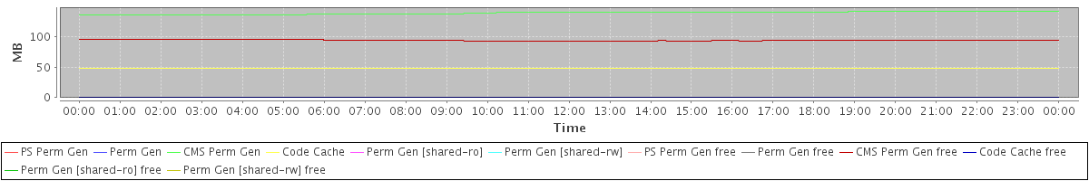 avg(PS Perm Gen) = 0.00 avg(Perm Gen) = 0.00 avg(CMS Perm Gen) = 139.20 avg(Code Cache) = 47.52 avg(Perm Gen [shared-ro]) = 0.00 avg(Perm Gen [shared-rw]) = 0.00 avg(PS Perm Gen free) = 0.00 avg(Perm Gen free) = 0.00 avg(CMS Perm Gen free) = 94.19 avg(Code Cache free) = 0.36 avg(Perm Gen [shared-ro] free) = 0.00 avg(Perm Gen [shared-rw] free) = 0.00