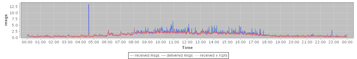 avg(received msgs) = 1.15 avg(delivered msgs) = 1.35 avg(received x rcpts) = 1.42