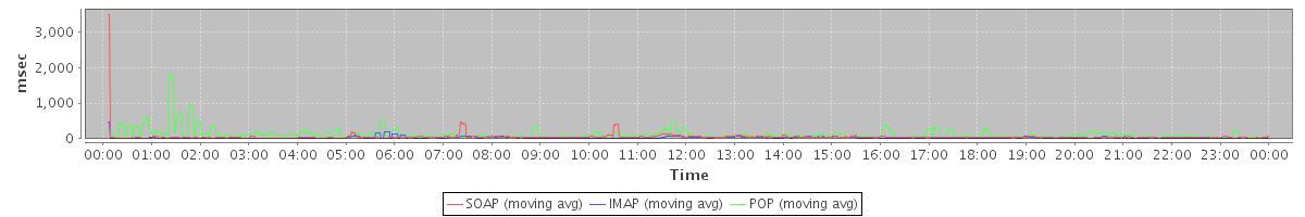 avg(IMAP) = 28.37 avg(IMAP SSL) = 1001.61 avg(POP) = 0.26 avg(POP SSL) = 3.38