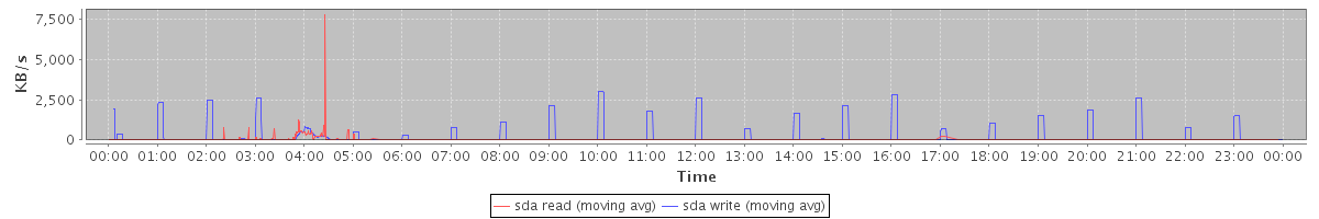 avg(sda read) = 0.76 avg(sda write) = 3.35