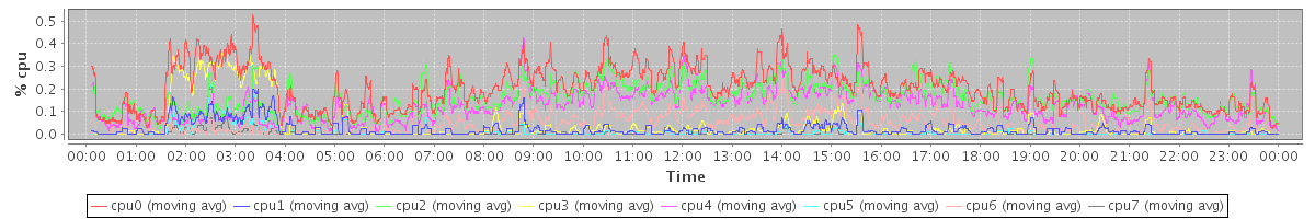 avg(cpu0) = 0.09 avg(cpu1) = 0.16 avg(cpu2) = 0.03 avg(cpu3) = 0.05 avg(cpu4) = 0.03 avg(cpu5) = 0.02 avg(cpu6) = 0.03 avg(cpu7) = 0.02
