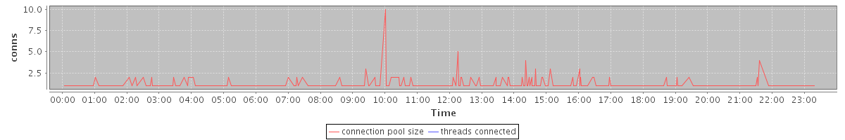 avg(connection pool size) = 0.25 avg(threads connected) = 0.00