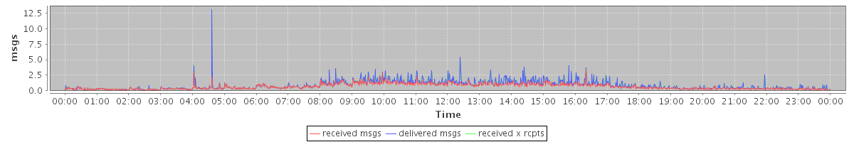 avg(received msgs) = 0.66 avg(delivered msgs) = 0.84 avg(received x rcpts) = 0.84
