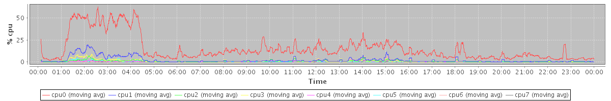 avg(cpu0) = 0.17 avg(cpu1) = 0.21 avg(cpu2) = 0.06 avg(cpu3) = 0.07 avg(cpu4) = 0.05 avg(cpu5) = 0.05 avg(cpu6) = 0.02 avg(cpu7) = 0.03