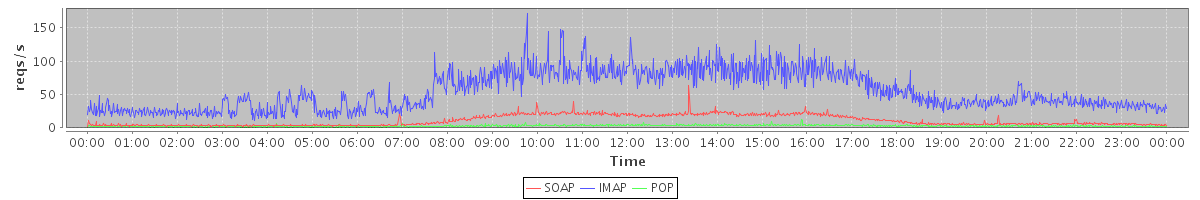 Host zm01.stanford.edu: Mailboxd: Request Rate by Client Protocol