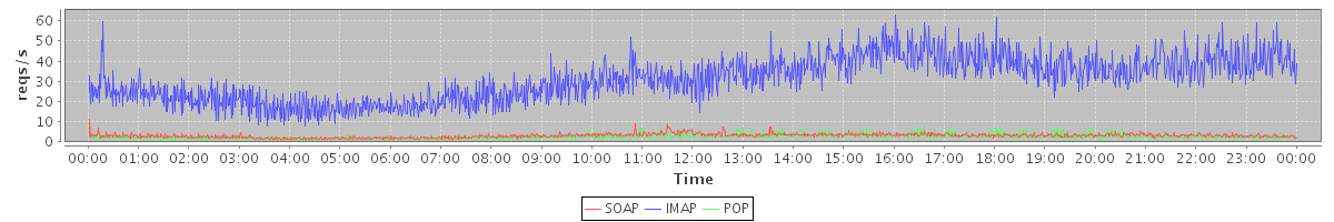 Host zm02.stanford.edu: Mailboxd: Request Rate by Client Protocol