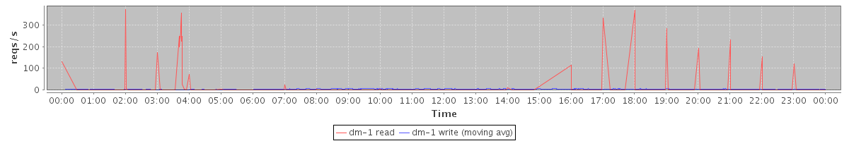 avg(dm-1 read) = 141.18 avg(dm-1 write) = 56.37