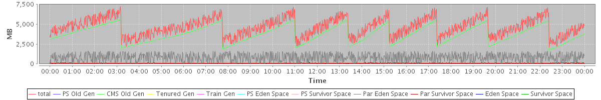 avg(total free) = 3179.83 avg(PS Old Gen free) = 0.00 avg(CMS Old Gen free) = 2289.54 avg(Tenured Gen free) = 0.00 avg(Train Gen free) = 0.00 avg(PS Eden Space free) = 0.00 avg(PS Survivor Space free) = 0.00 avg(Par Eden Space free) = 775.14 avg(Par Survivor Space free) = 115.15 avg(Eden Space free) = 0.00 avg(Survivor Space free) = 0.00