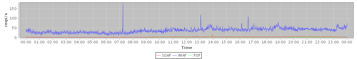 Host zm02.stanford.edu: Mailboxd: Request Rate by Client Protocol