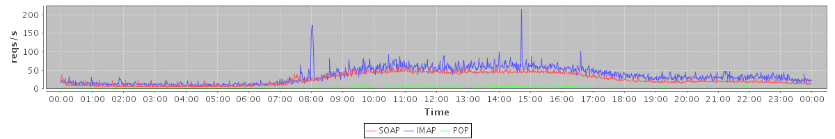 Host zm06.stanford.edu: Mailboxd: Request Rate by Client Protocol