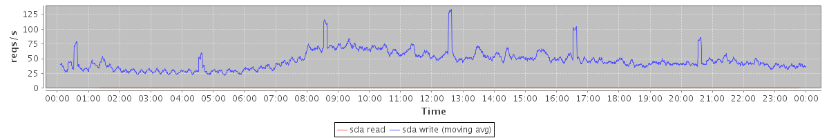 avg(sda read) = 0.00 avg(sda write) = 46.80
