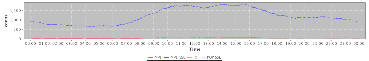 avg(IMAP) = 43.59 avg(IMAP SSL) = 1208.63 avg(POP) = 0.23 avg(POP SSL) = 2.18