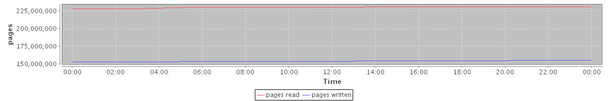 avg(pages read) = 229678236.72 avg(pages written) = 153685711.98