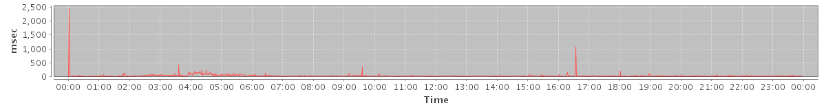 max(MsgActionRequest.move) = 361.00 max(SearchRequest) = 208.00 max(GetContactsRequest) = 285.00 max(MsgActionRequest.delete) = 991.00 max(NoOpRequest) = 194.00 max(MsgActionRequest.update) = 235.00 max(AddMsgRequest) = 211.00 max(GetFolderRequest) = 1815.00 max(SyncRequest) = 705.00 max(GetAppointmentRequest) = 565.00