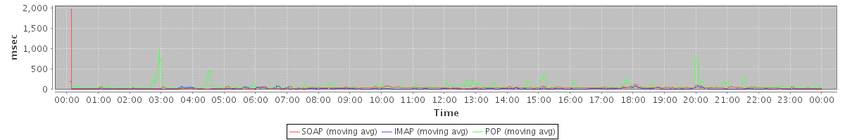 avg(IMAP) = 31.56 avg(IMAP SSL) = 1067.68 avg(POP) = 0.23 avg(POP SSL) = 3.05