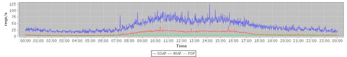 Host zm02.stanford.edu: Mailboxd: Request Rate by Client Protocol