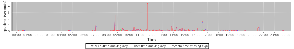 avg(total cputime) = 0.08 avg(user time) = 0.07 avg(system time) = 0.00