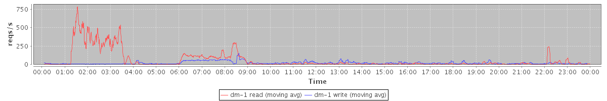 avg(dm-1 read) = 1086.45 avg(dm-1 write) = 218.00