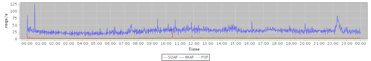 Host zm01.stanford.edu: Mailboxd: Request Rate by Client Protocol