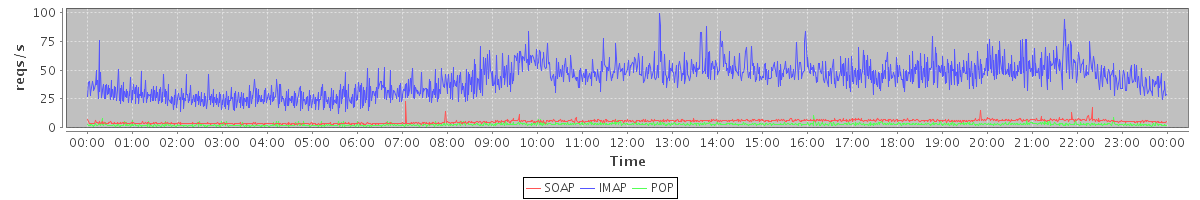 Host zm09.stanford.edu: Mailboxd: Request Rate by Client Protocol