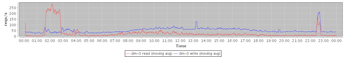 avg(dm-1 read) = 19.98 avg(dm-1 write) = 2.09