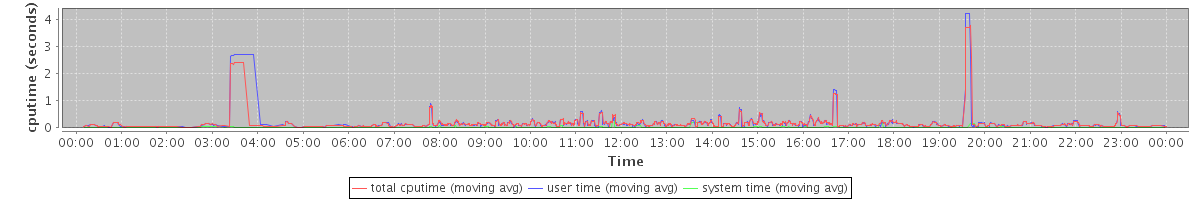 avg(total cputime) = 0.10 avg(user time) = 0.09 avg(system time) = 0.01
