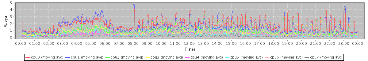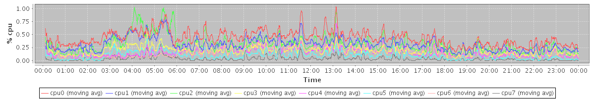 avg(cpu0) = 0.20 avg(cpu1) = 0.23 avg(cpu2) = 0.07 avg(cpu3) = 0.08 avg(cpu4) = 0.06 avg(cpu5) = 0.07 avg(cpu6) = 0.04 avg(cpu7) = 0.04