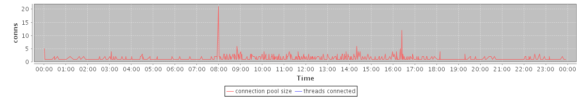 avg(connection pool size) = 0.65 avg(threads connected) = 0.00