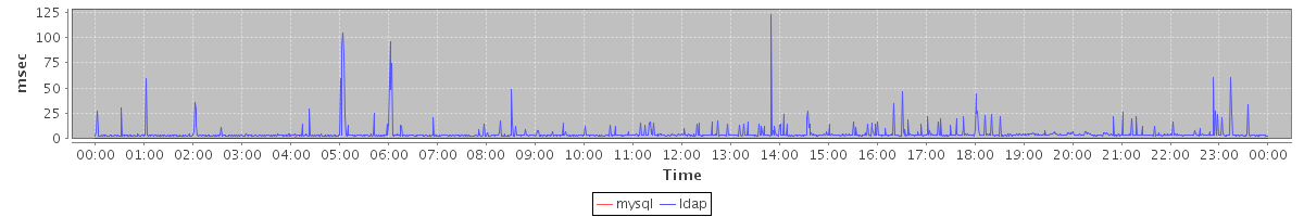 avg(mysql) = 0.23 avg(ldap) = 5.02