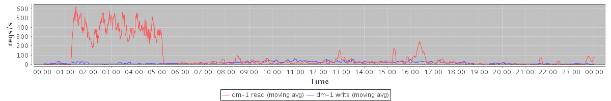 avg(dm-1 read) = 1391.96 avg(dm-1 write) = 263.54