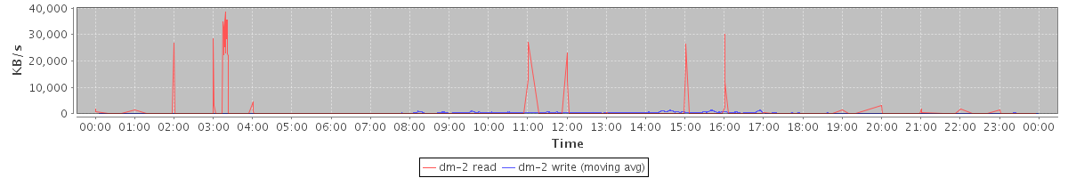 avg(dm-2 read) = 2.98 avg(dm-2 write) = 15.13