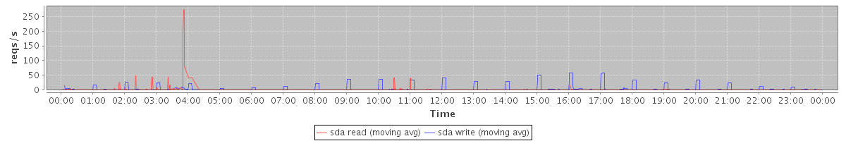 avg(sda read) = 0.81 avg(sda write) = 4.73