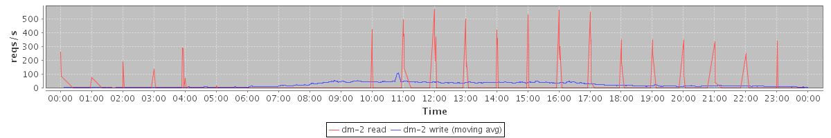 avg(dm-1 read) = 557.23 avg(dm-1 write) = 1242.39