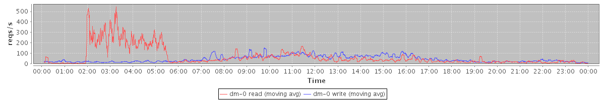 avg(dm-1 read) = 2495.19 avg(dm-1 write) = 470.91