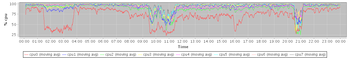 avg(cpu0) = 1.02 avg(cpu1) = 0.51 avg(cpu2) = 0.74 avg(cpu3) = 0.36 avg(cpu4) = 0.63 avg(cpu5) = 0.28 avg(cpu6) = 0.41 avg(cpu7) = 0.26