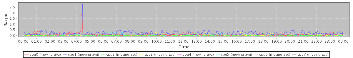 avg(cpu0) = 0.08 avg(cpu1) = 0.20 avg(cpu2) = 0.02 avg(cpu3) = 0.04 avg(cpu4) = 0.02 avg(cpu5) = 0.03 avg(cpu6) = 0.03 avg(cpu7) = 0.02