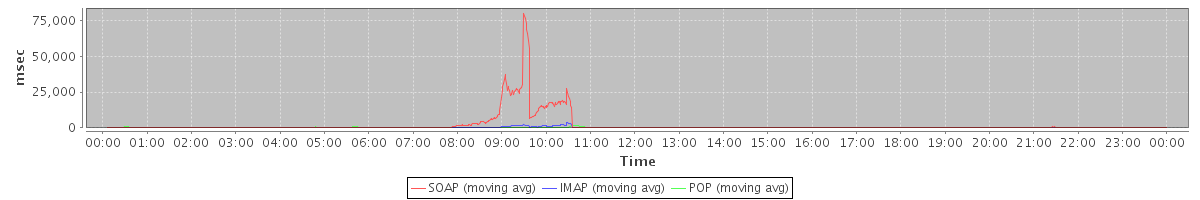 Host zm05.stanford.edu: Mailboxd: Response Time by Client Protocol