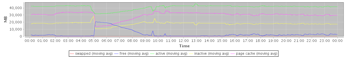 avg(swapped) = 16.86 avg(free) = 3461.46 avg(active) = 41102.12 avg(inactive) = 17853.21 avg(page cache) = 29951.80