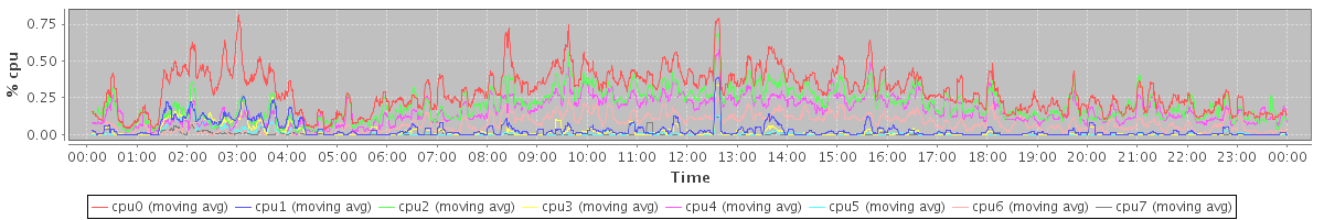 avg(cpu0) = 0.30 avg(cpu1) = 0.03 avg(cpu2) = 0.20 avg(cpu3) = 0.02 avg(cpu4) = 0.16 avg(cpu5) = 0.01 avg(cpu6) = 0.07 avg(cpu7) = 0.00