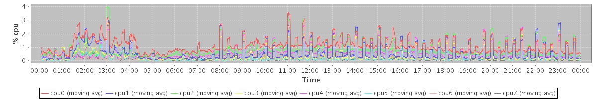 avg(cpu0) = 0.07 avg(cpu1) = 0.14 avg(cpu2) = 0.02 avg(cpu3) = 0.03 avg(cpu4) = 0.02 avg(cpu5) = 0.02 avg(cpu6) = 0.01 avg(cpu7) = 0.01