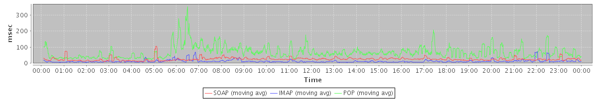 Host zm09.stanford.edu: Mailboxd: Response Time by Client Protocol