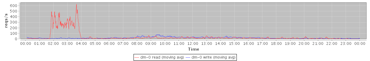 avg(dm-1 read) = 585.10 avg(dm-1 write) = 1182.60
