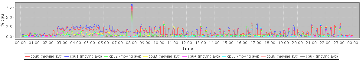avg(cpu0) = 0.24 avg(cpu1) = 0.17 avg(cpu2) = 0.11 avg(cpu3) = 0.08 avg(cpu4) = 0.09 avg(cpu5) = 0.04 avg(cpu6) = 0.08 avg(cpu7) = 0.01